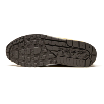 Sylwetka modeli Air Max 1 z 1987 roku połączona z futurystycznym akcentem Travisa Scotta – Air Max 1 Travis Scott Cactus Jack Saturn Gold. Całość opiera się na efektownej jasnej żółci zmieszanej ze złotymi i brązowymi detalami. Jednak to, co najbardziej rzuca się w oczy, to logo Nike, które zostało odwrócone na lewą stronę.
