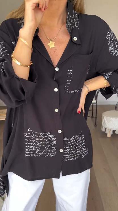 Letter Print Fashion Lapel Shirt